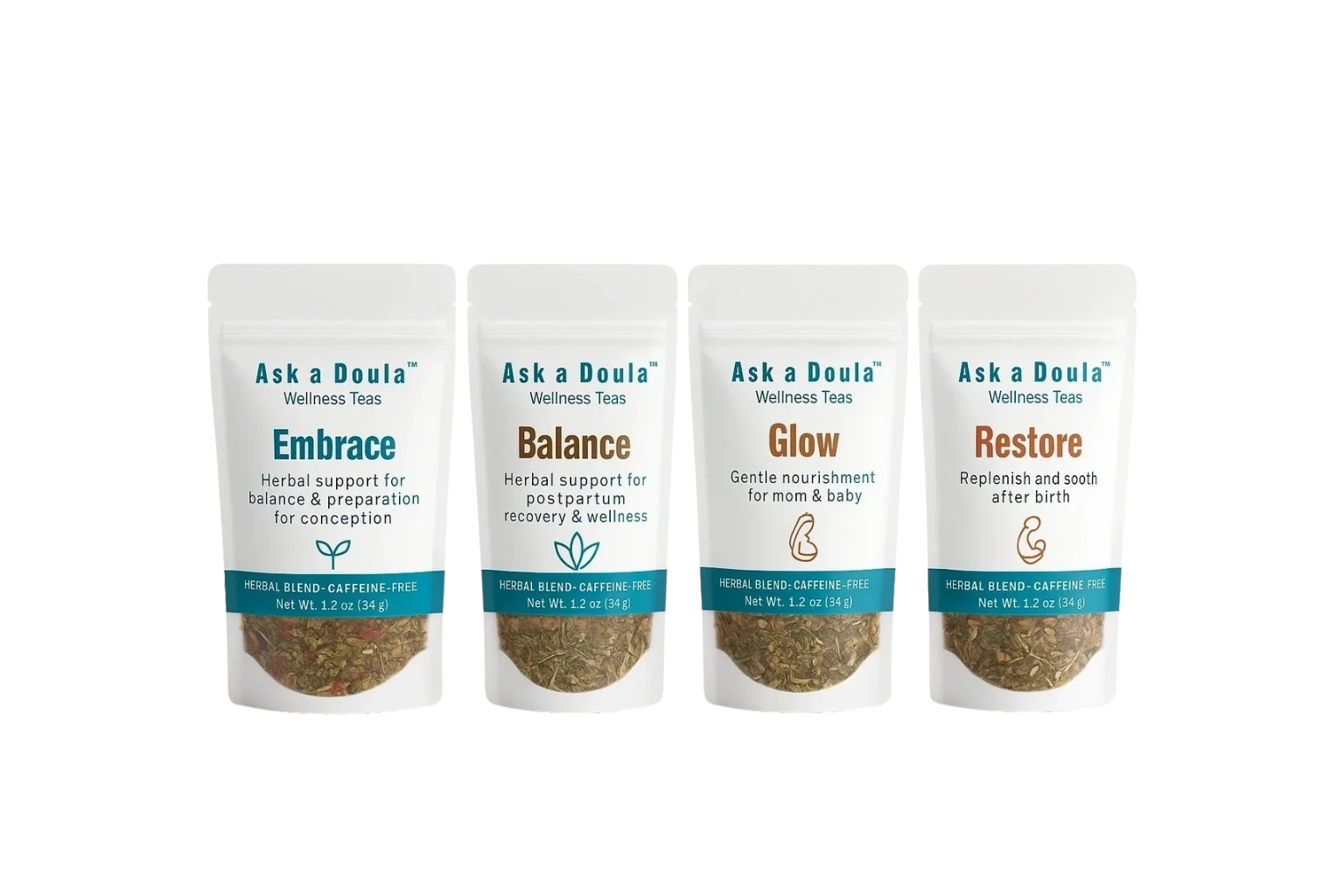 Crafted with care and guided by the rhythms of womanhood, our collection of ASK A DOULA™ Wellness Teas blends tradition, herbal wisdom, and intentional healing for every stage of your journey — from conception to postpartum renewal.
